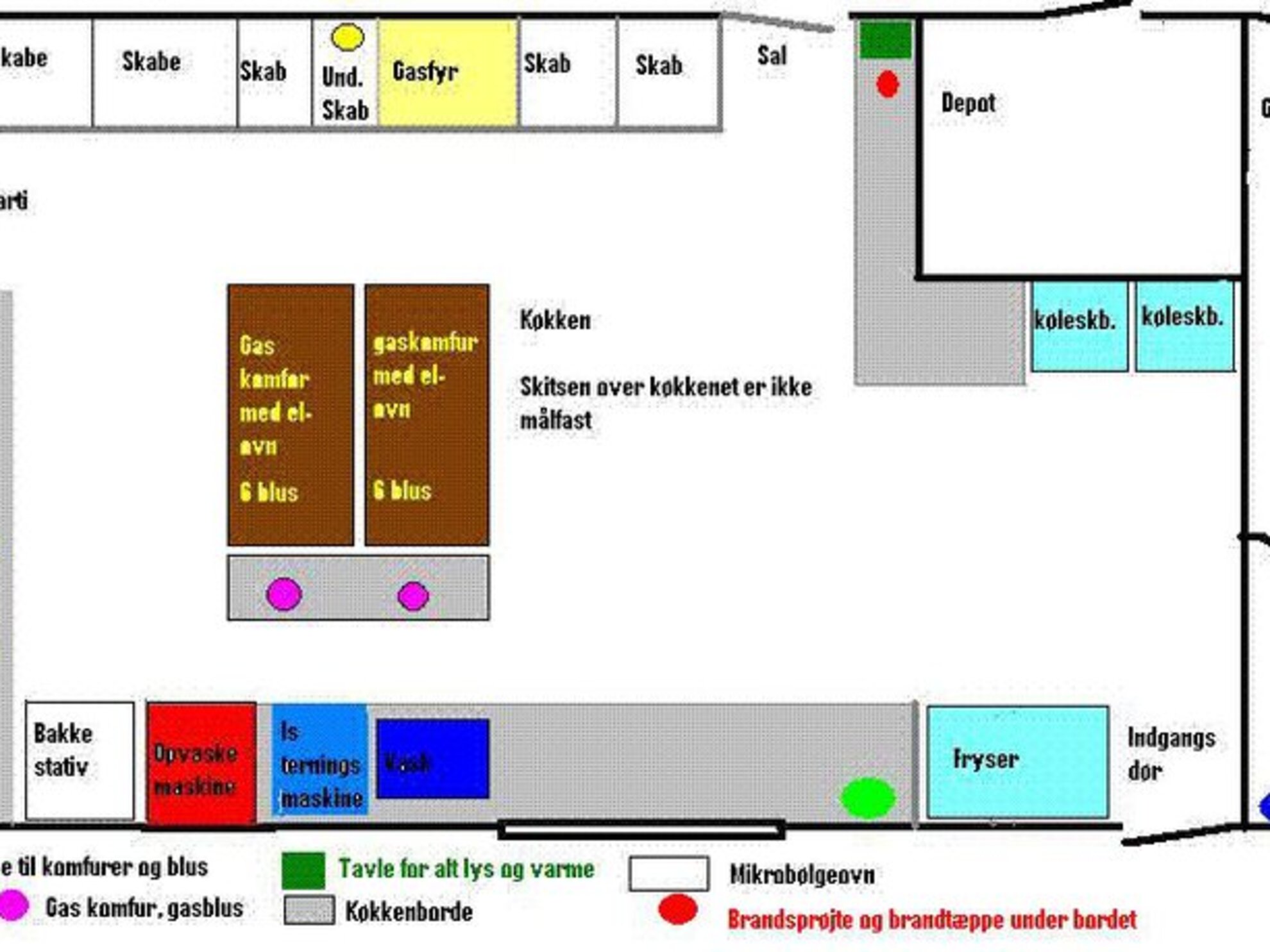 Inden huset forlades, skal borde, ovne, køleskabe, fryser i køkkenet være rengjorde, gulvene i hele huset fejet, samt skraldeposer tømmes.