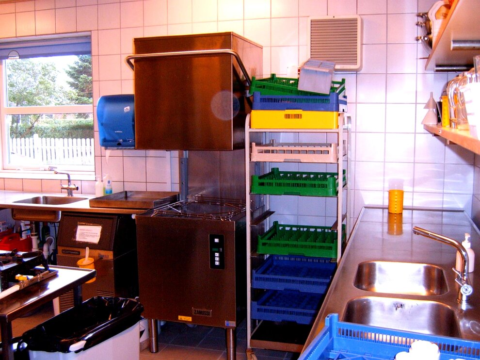 Evt. defekt porcelæn mm. lægges i den hvide kasse oven på køleskabet, eller i køkkenvinduet, på køkkenbordet ved siden af kaffemaskinen for senere afregning ved fradrag i depositum.